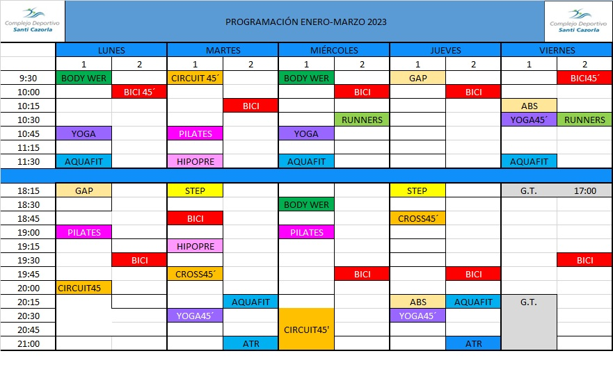 | LUNES A VIERNES | 10:30 a 13:00h | 19:00 a 21:30h |